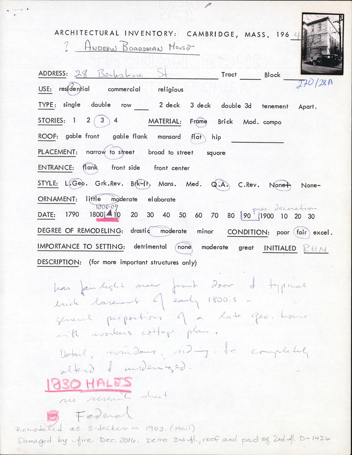 28 Berkshire St - Architectural Inventory Form