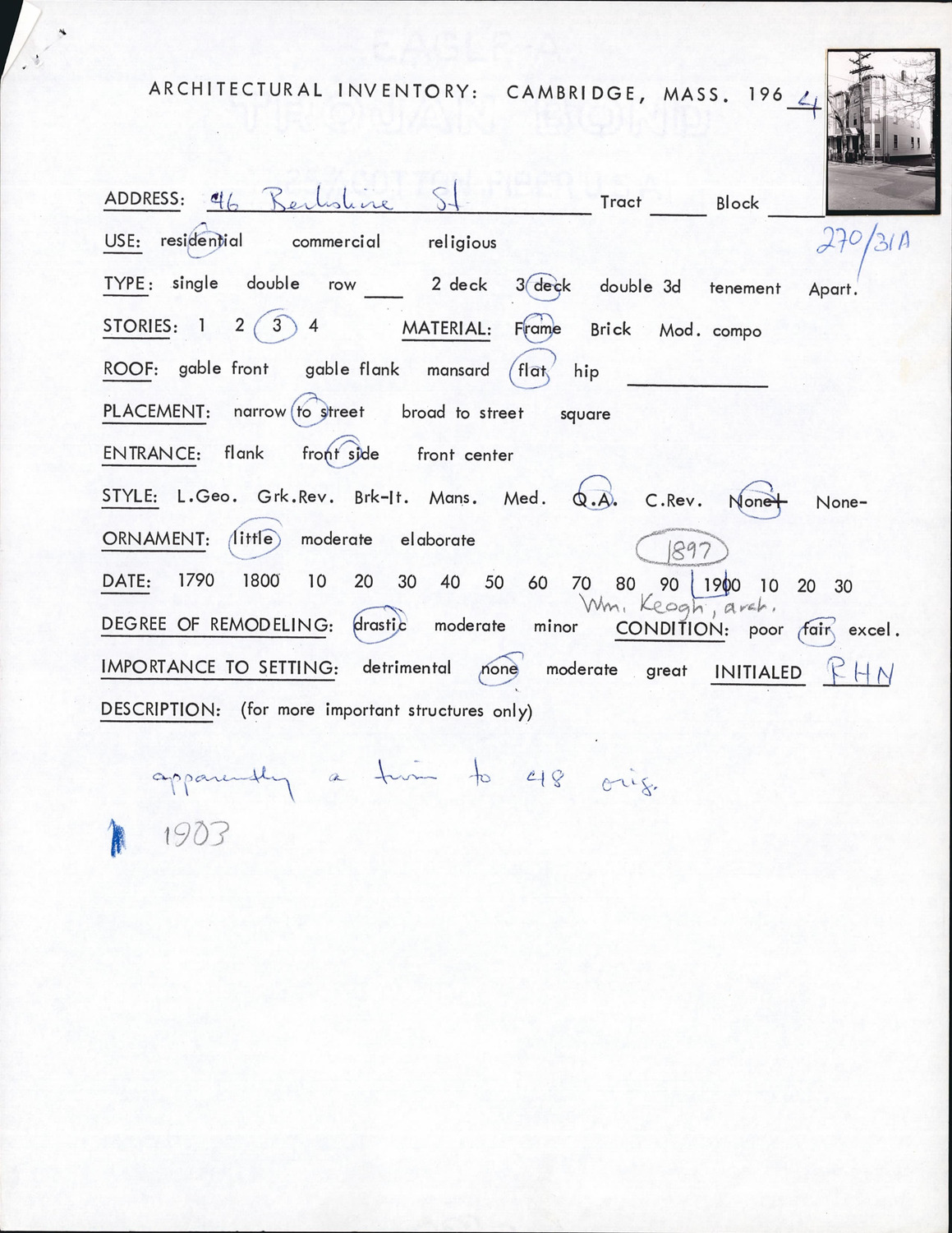 46 Berkshire St - Architectural Inventory Form