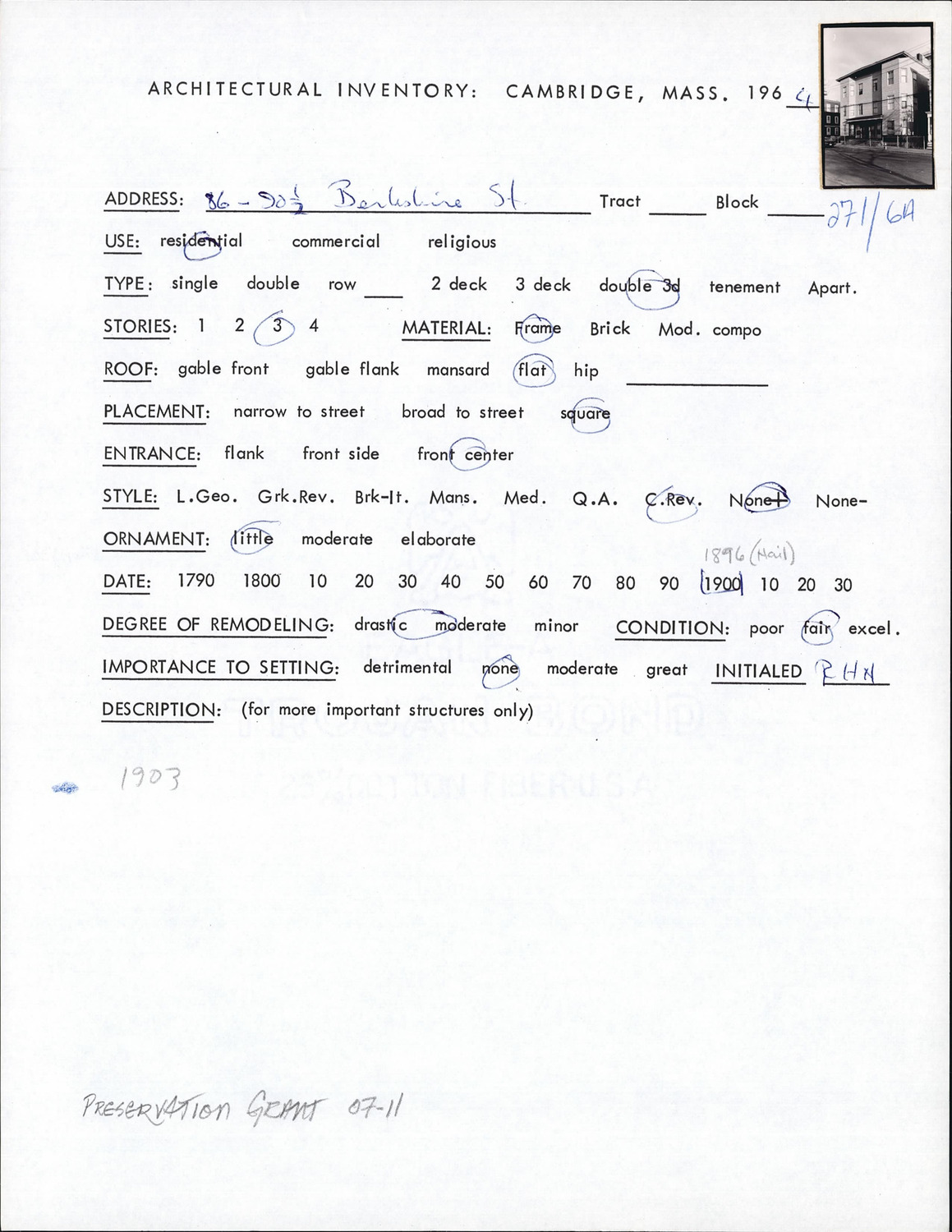 86-90 Berkshire St - Architectural Inventory Form