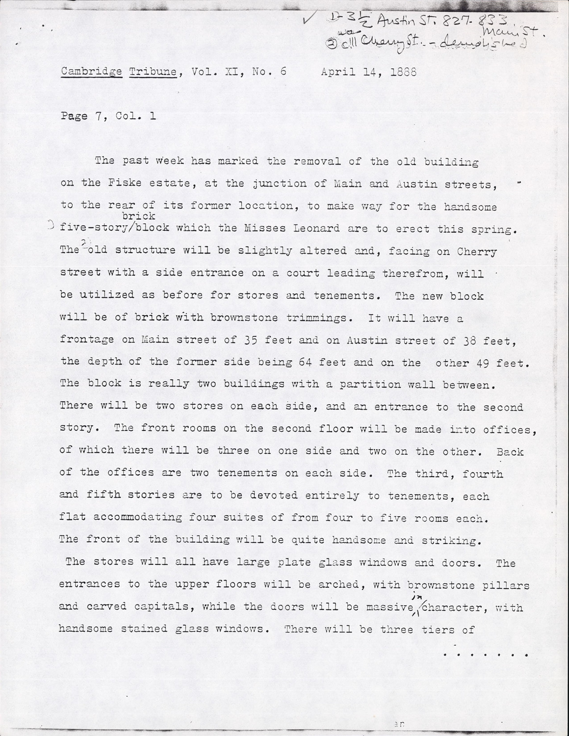 - Cambridge Historical Commission, Digital Architectural Survey and History.