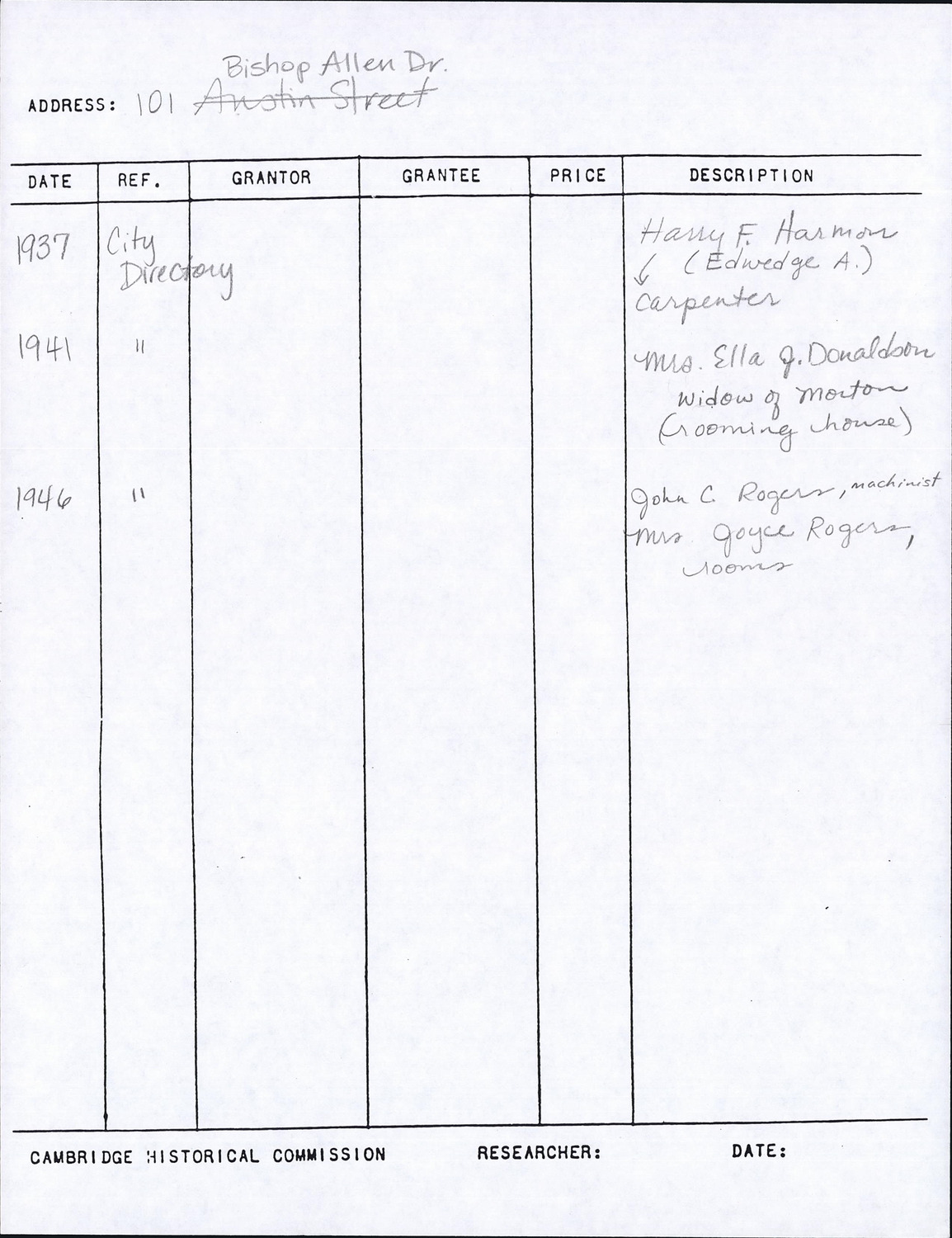 101 Bishop Allen Dr - Research Form