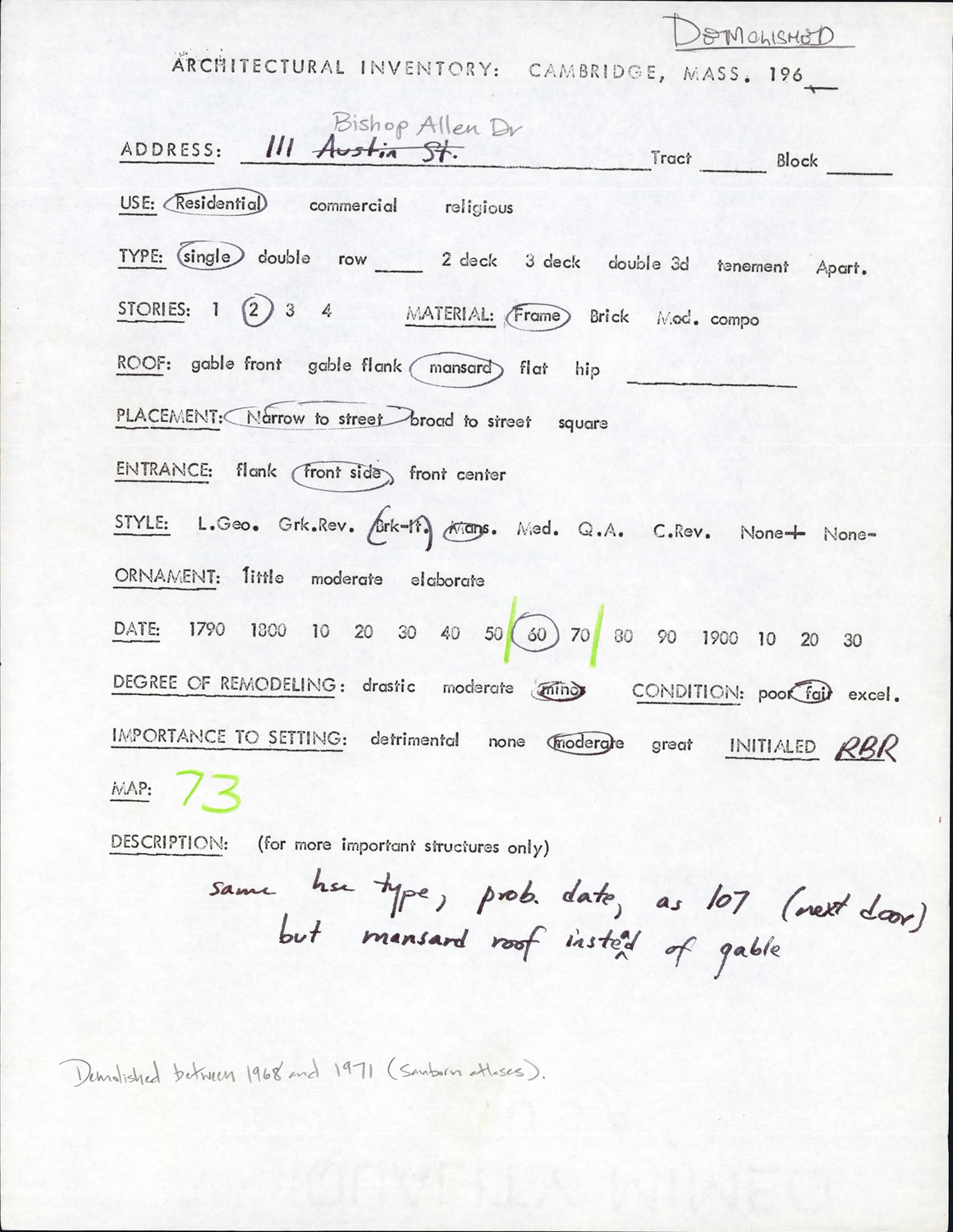 - Cambridge Historical Commission, Digital Architectural Survey and History.