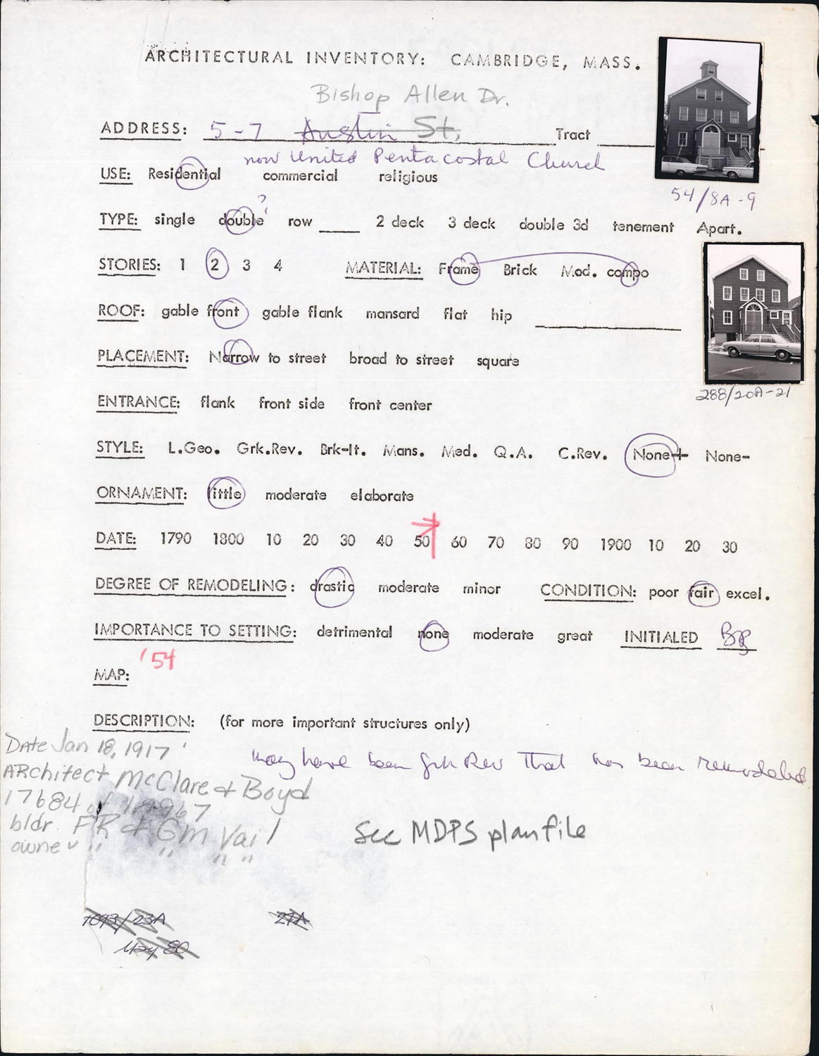 5-7 Bishop Allen Dr - Architectural Inventory Form