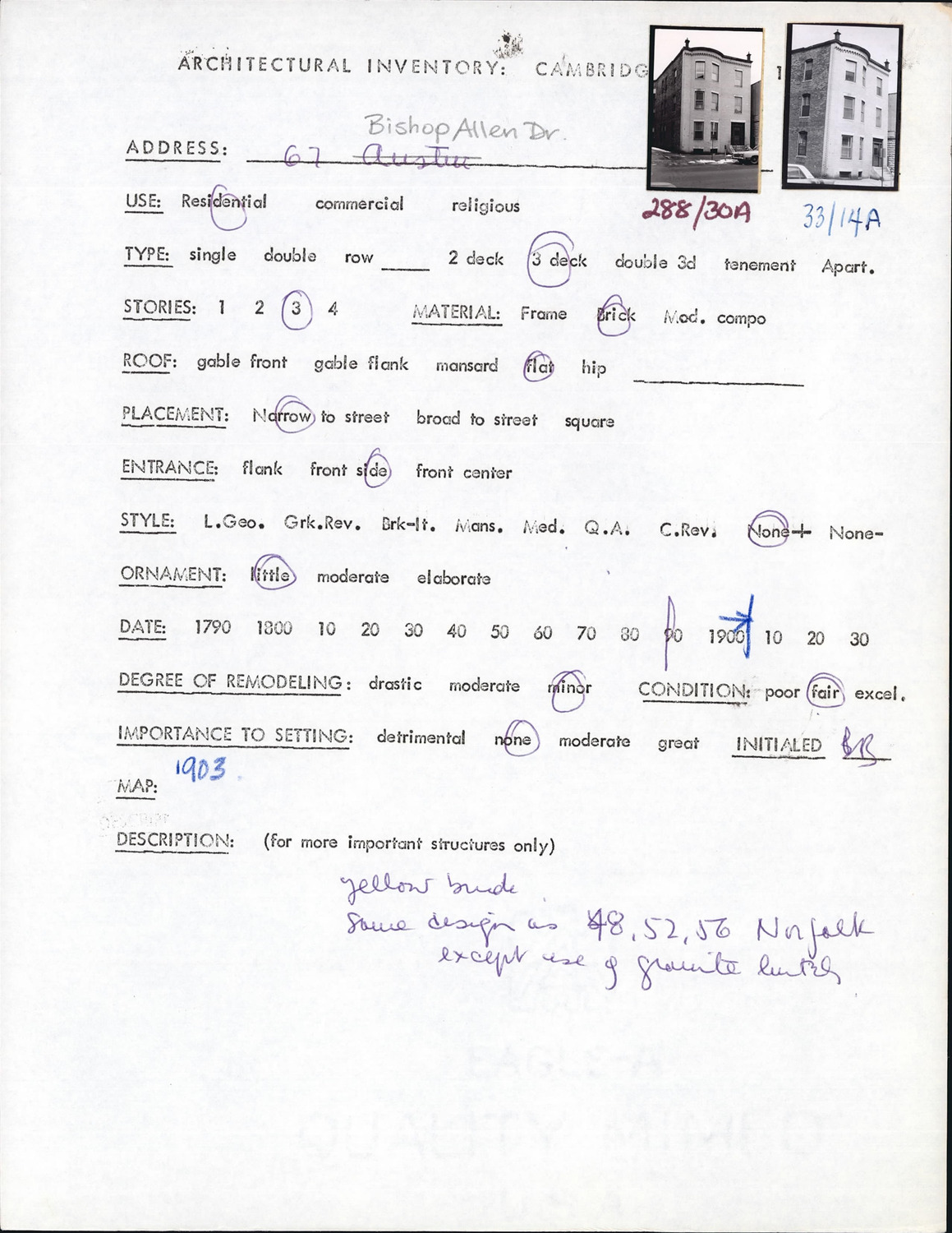 67 Bishop Allen Dr - Architectural Inventory Form