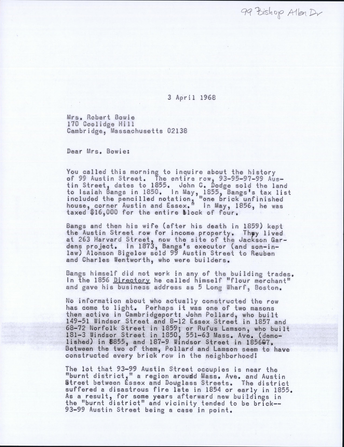 93-99 Bishop Allen Dr - Correspondence