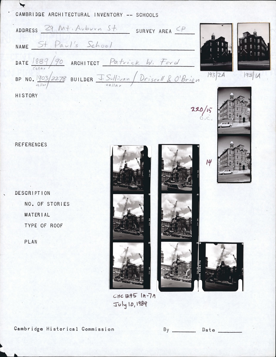 29 Mt Auburn St - St Pauls Church Complex - Architectural Inventory Form