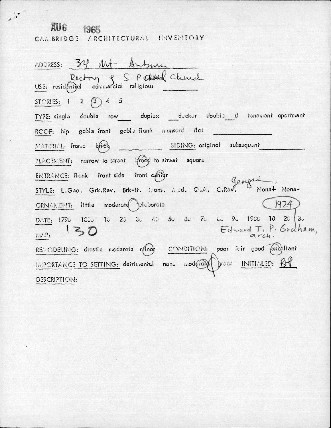 34 Mt Auburn St - St Pauls Church Complex - Architectural Inventory Form