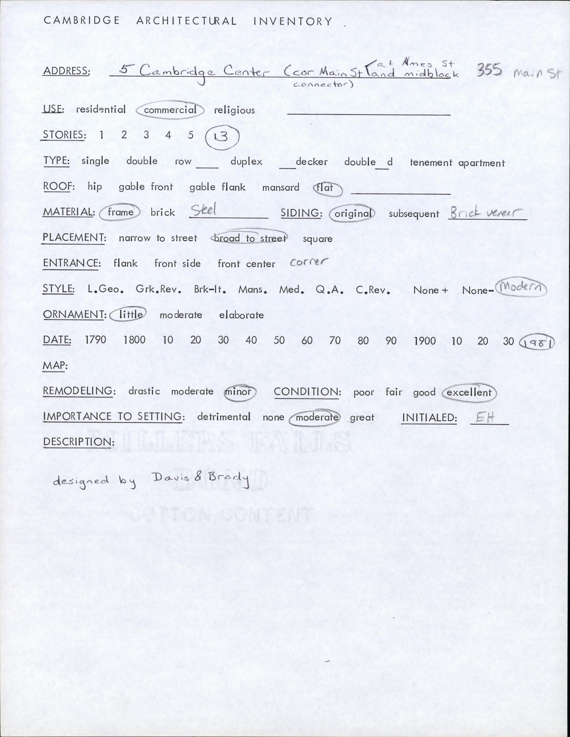 - Cambridge Historical Commission, Digital Architectural Survey and History.