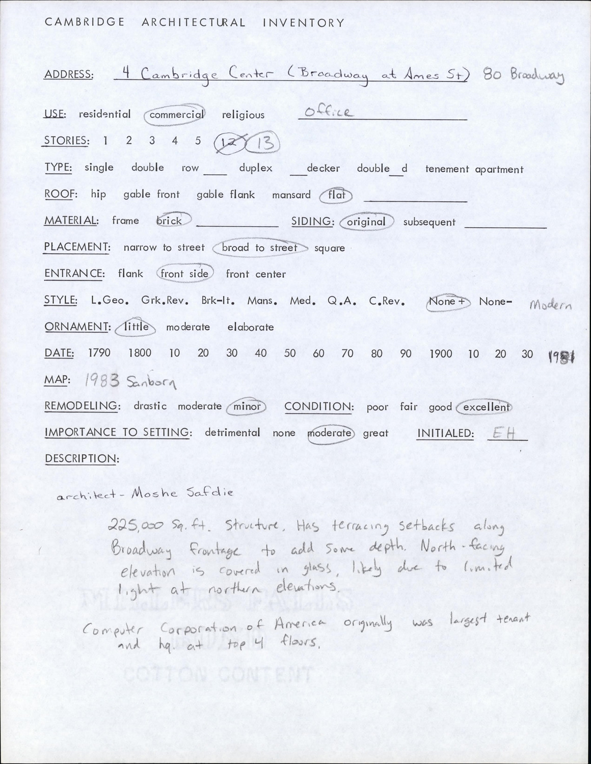 4 Cambridge Center - Architectural Inventory Form