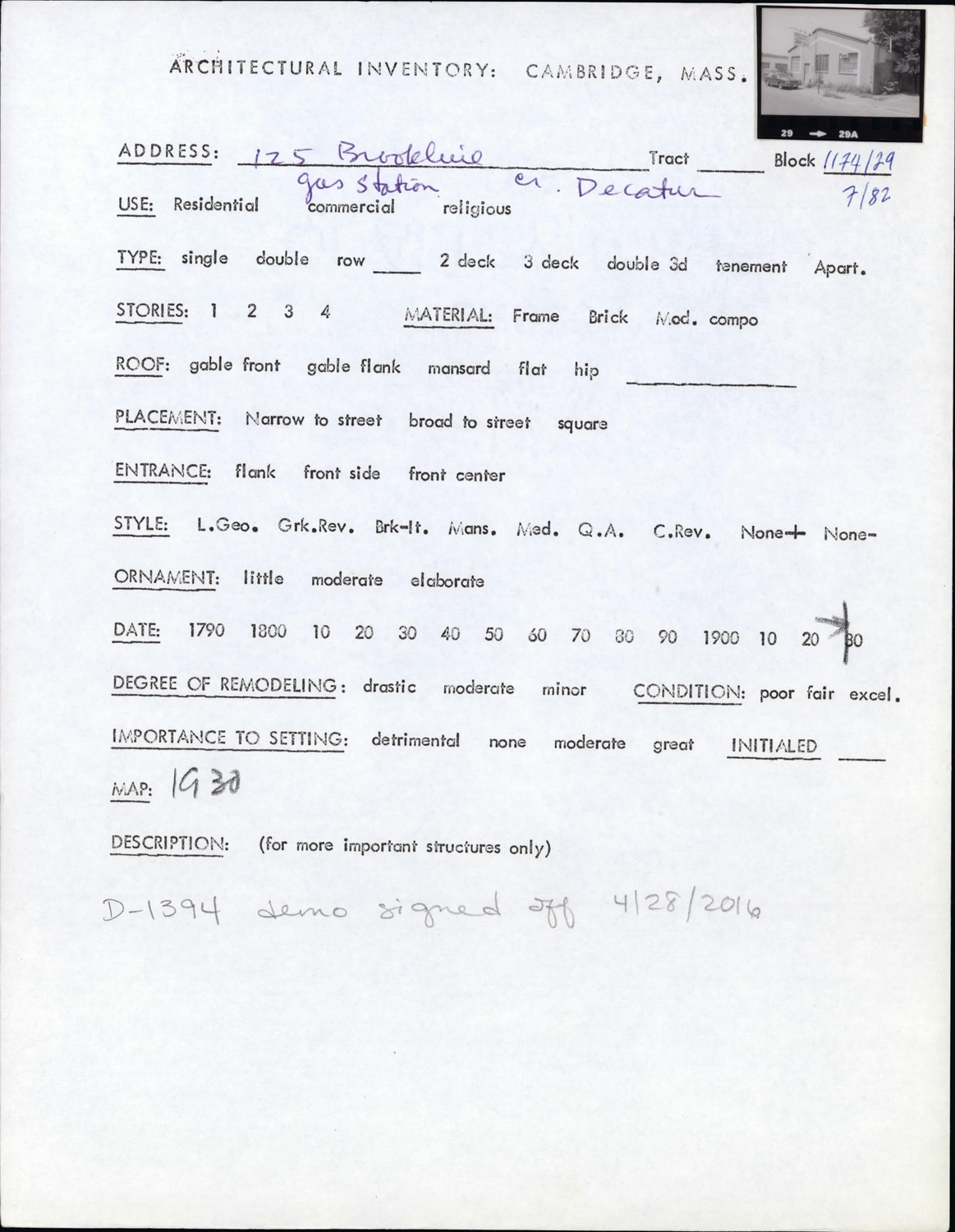 125 Brookline St - Architectural Inventory Form