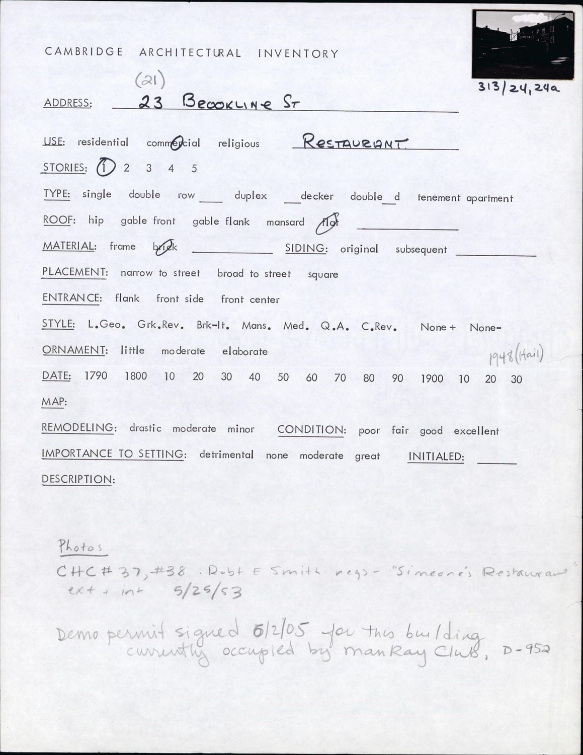 - Cambridge Historical Commission, Digital Architectural Survey and History.