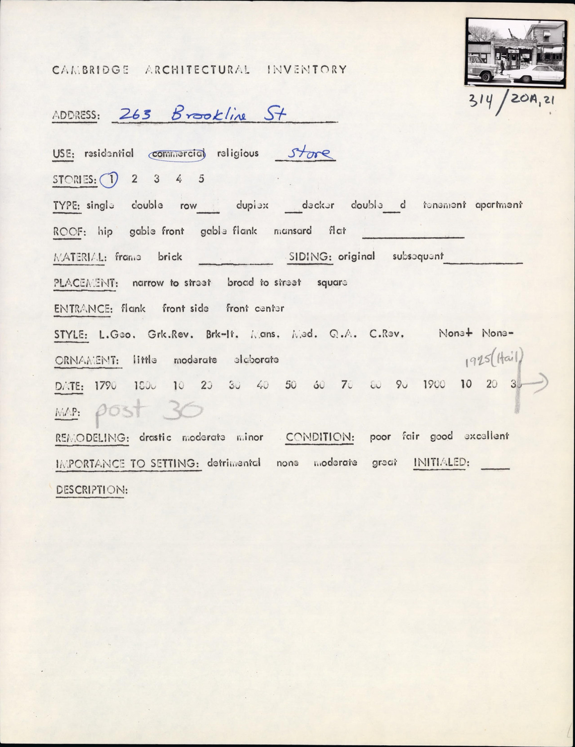 263 Brookline St - Architectural Inventory Form