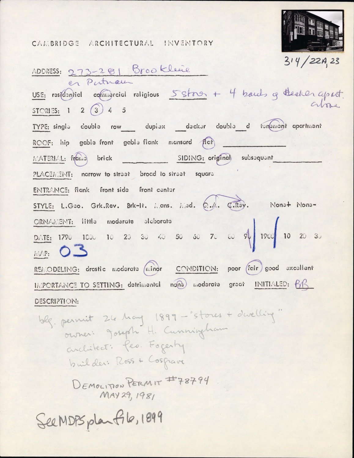 273-281 Brookline St - Architectural Inventory Form
