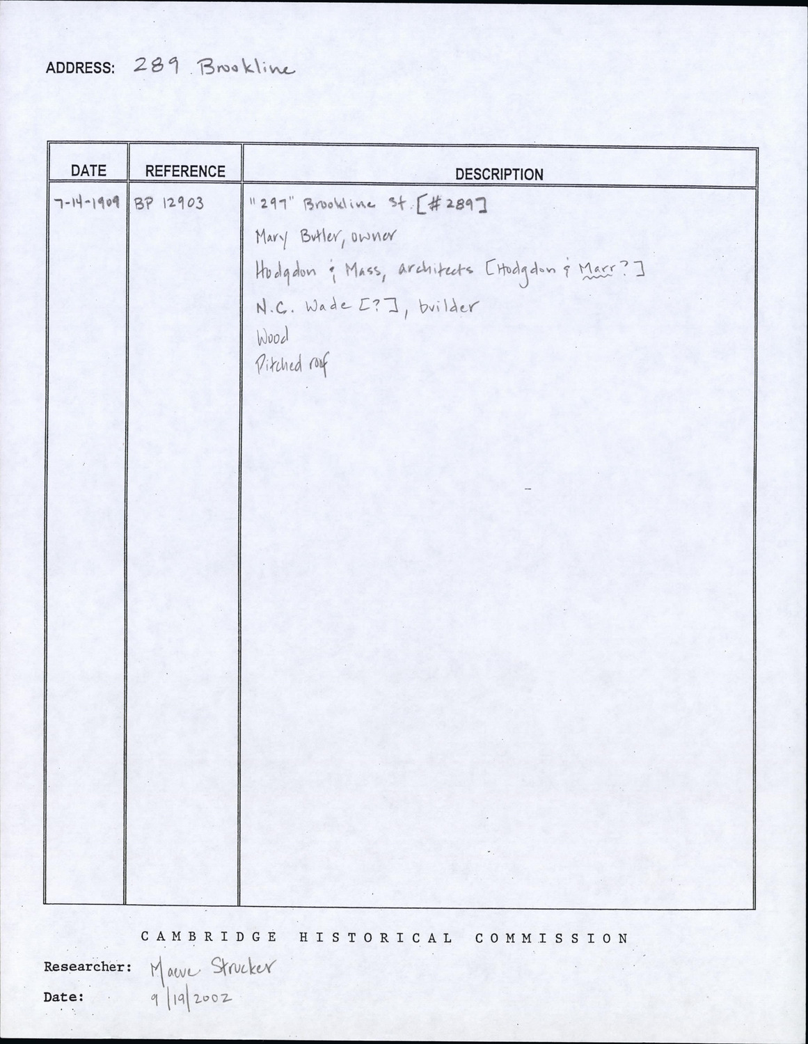 289 Brookline St - Research Form
