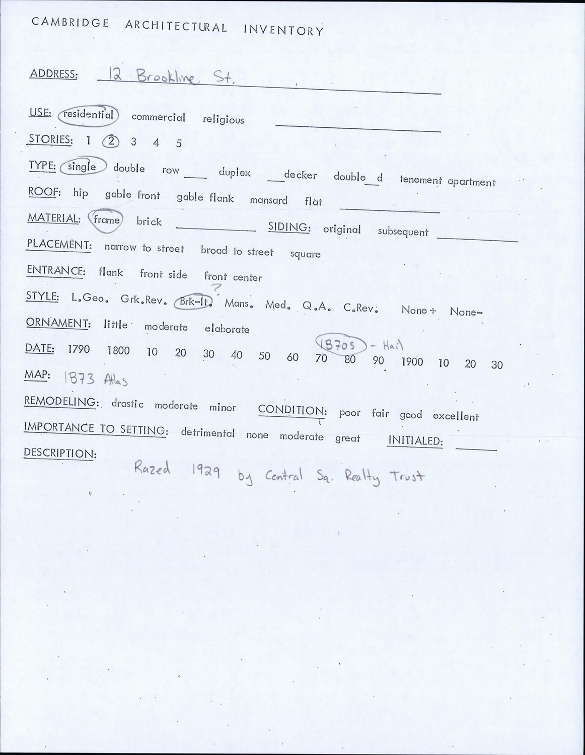 12 Brookline St - Architectural Inventory Form