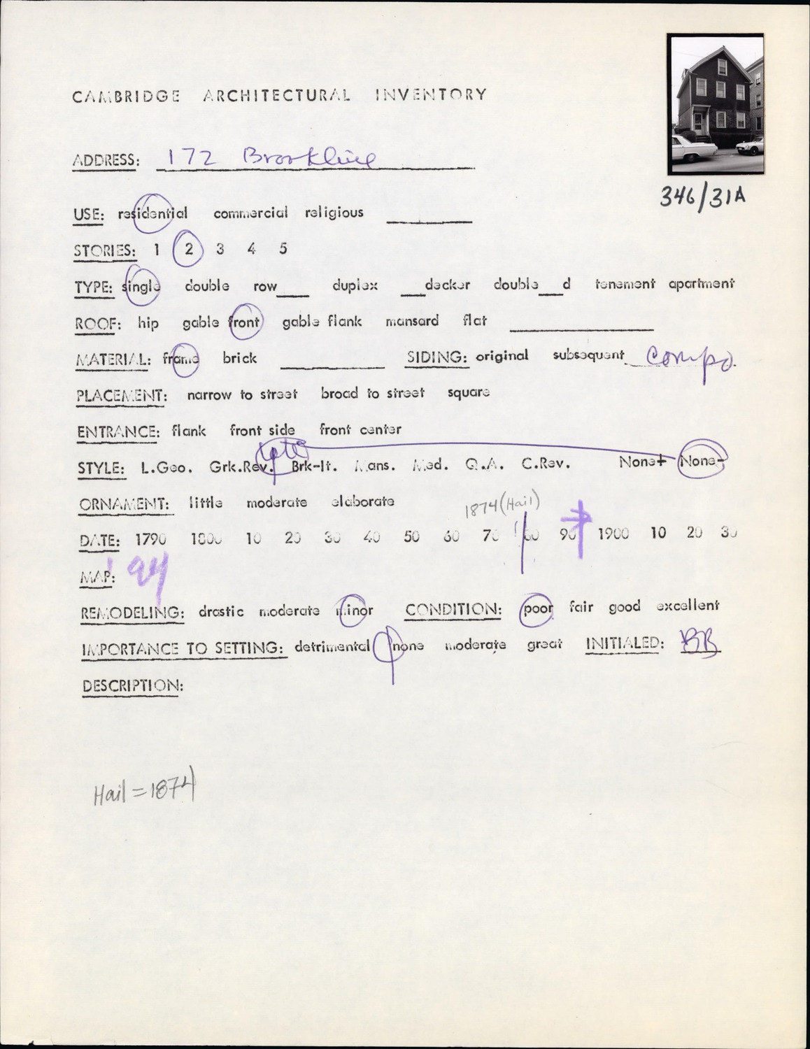 172 Brookline St - Architectural Inventory Form