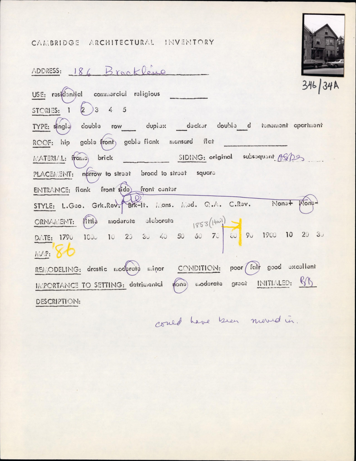 186 Brookline St - Architectural Inventory Form