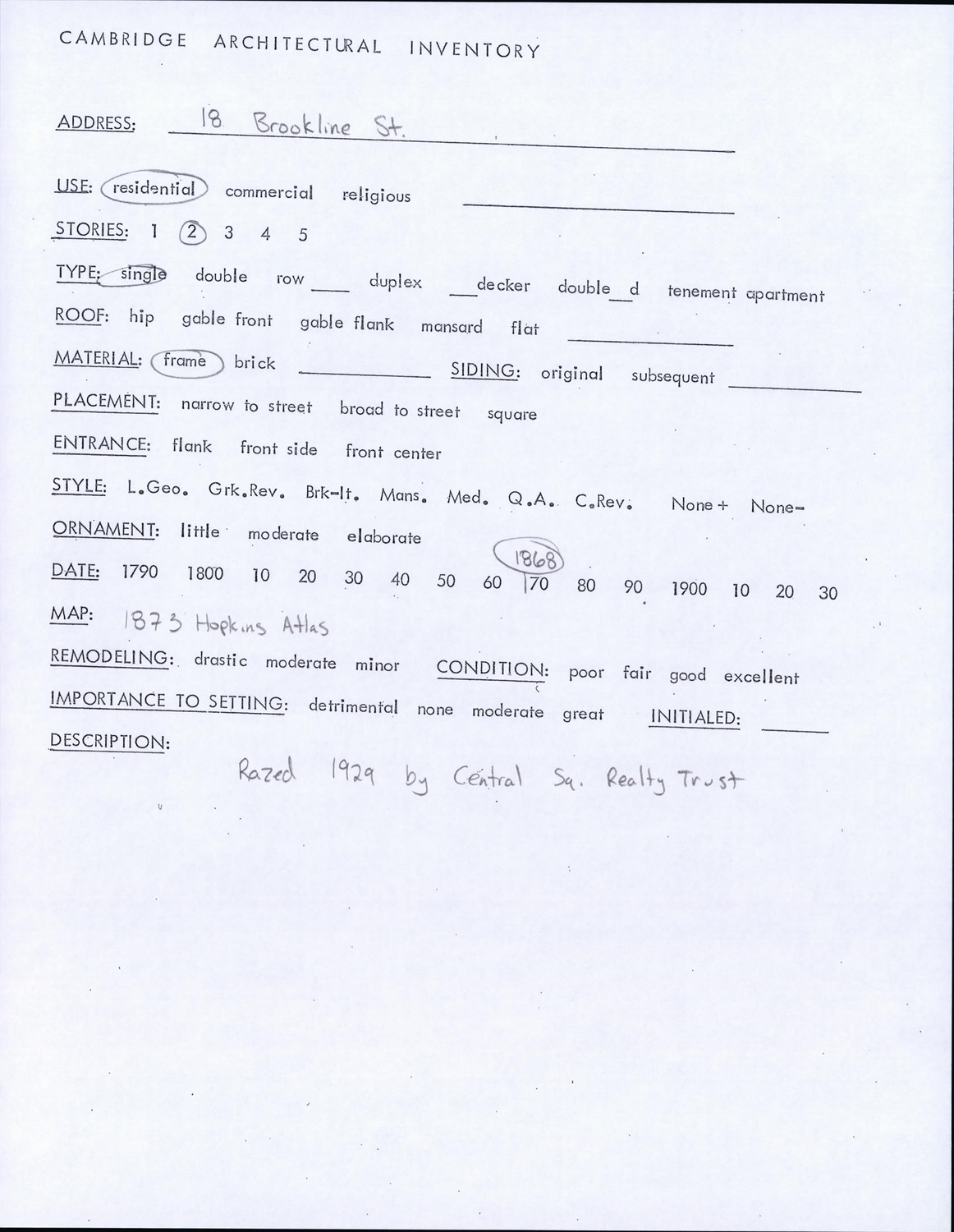 - Cambridge Historical Commission, Digital Architectural Survey and History.