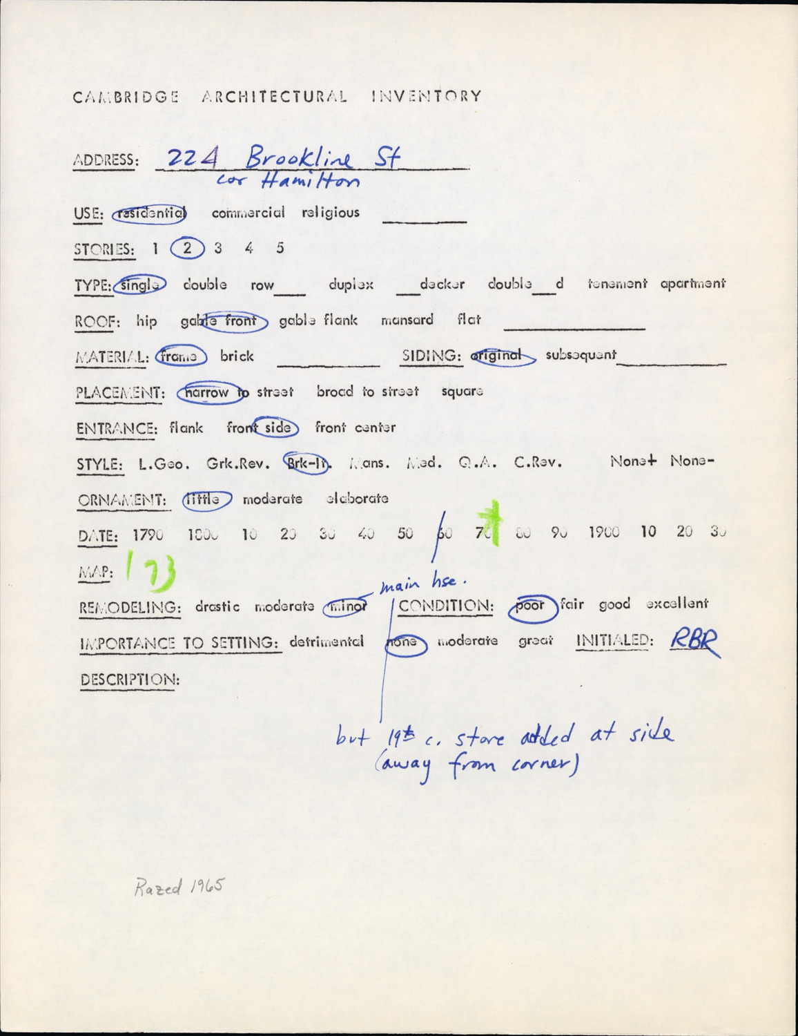 - Cambridge Historical Commission, Digital Architectural Survey and History.