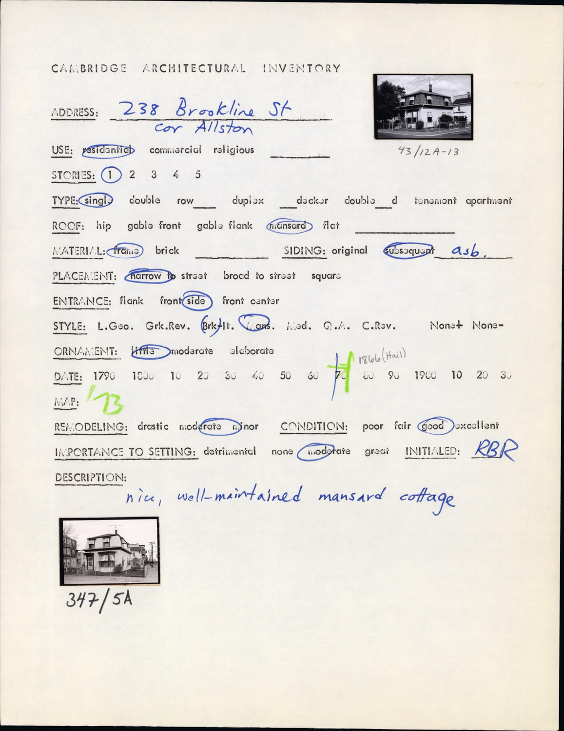 238 Brookline St - Architectural Inventory Form