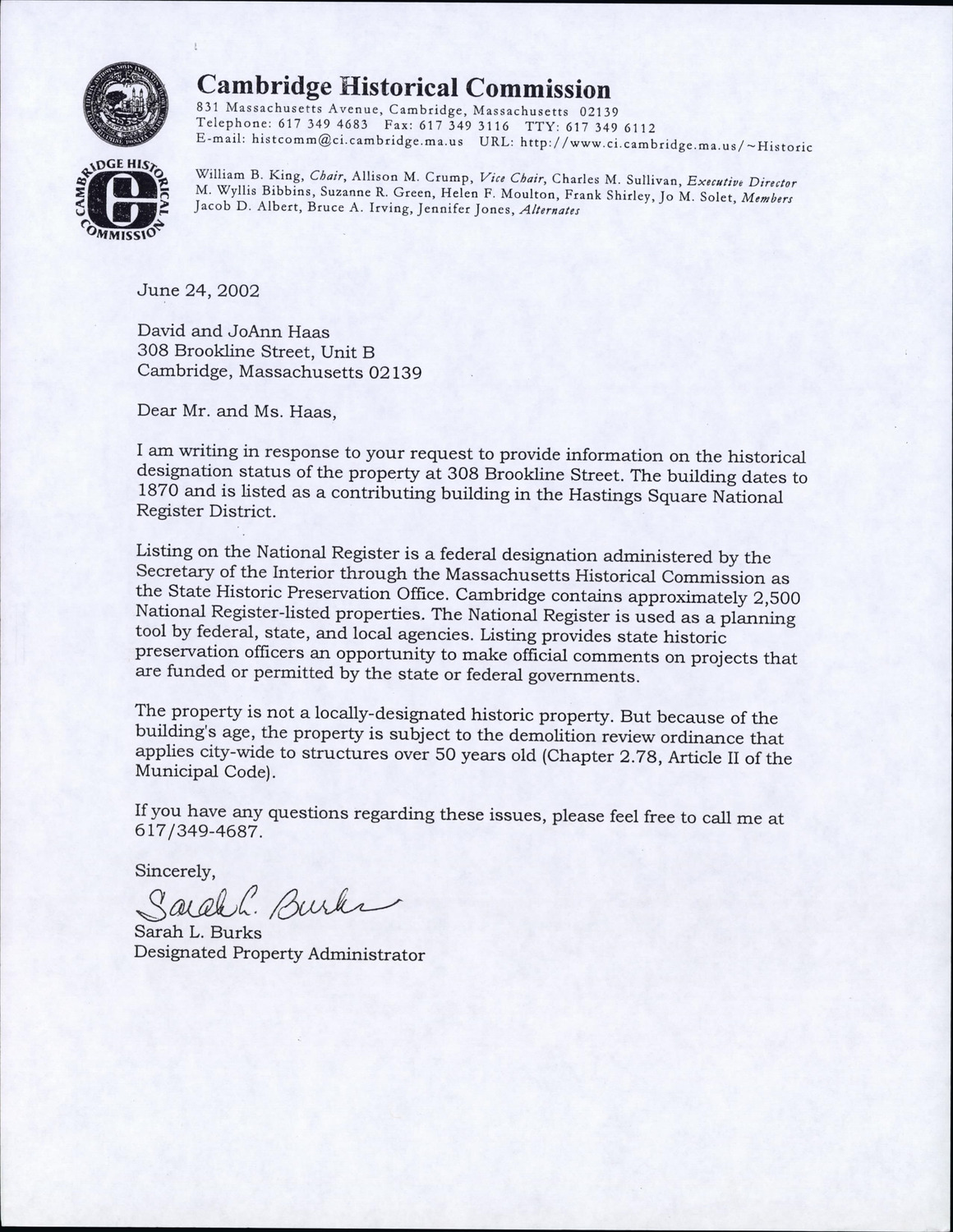 308 Brookline St - Correspondence