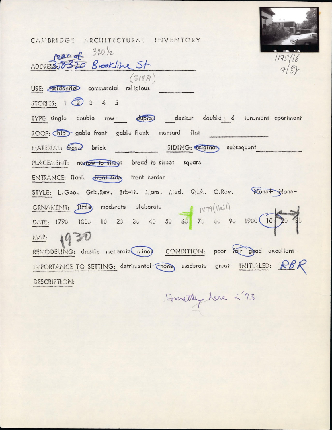 320 1/2 Brookline St - Architectural Inventory Form