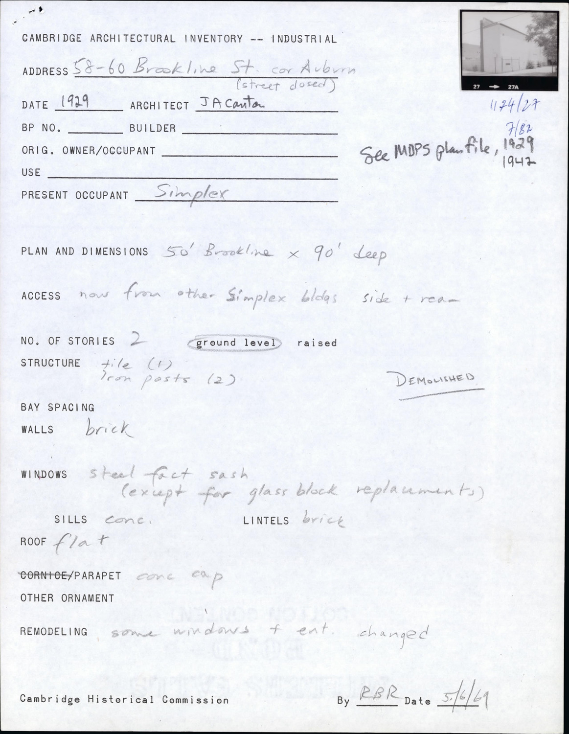 - Cambridge Historical Commission, Digital Architectural Survey and History.
