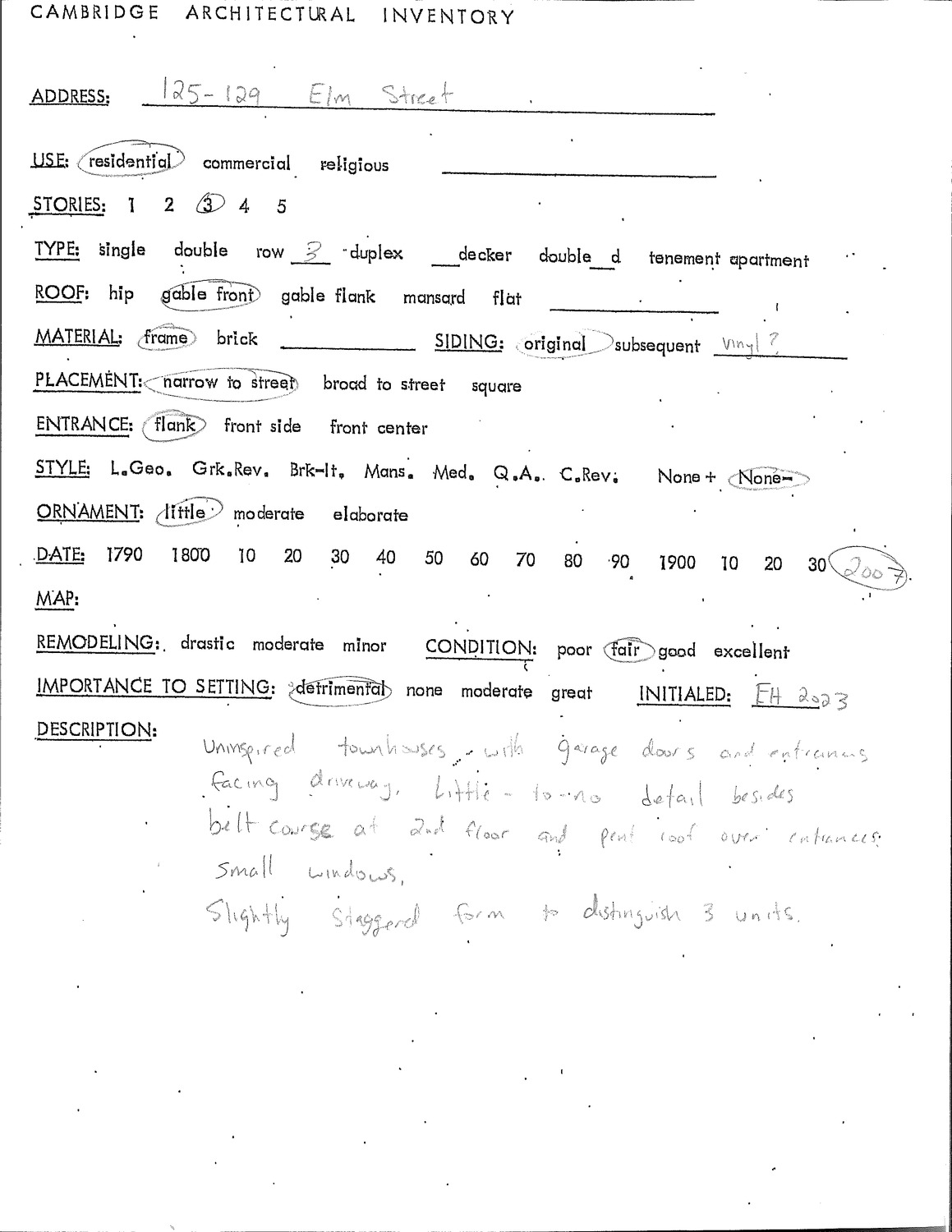 125-129 Elm St - Architectural Inventory Form