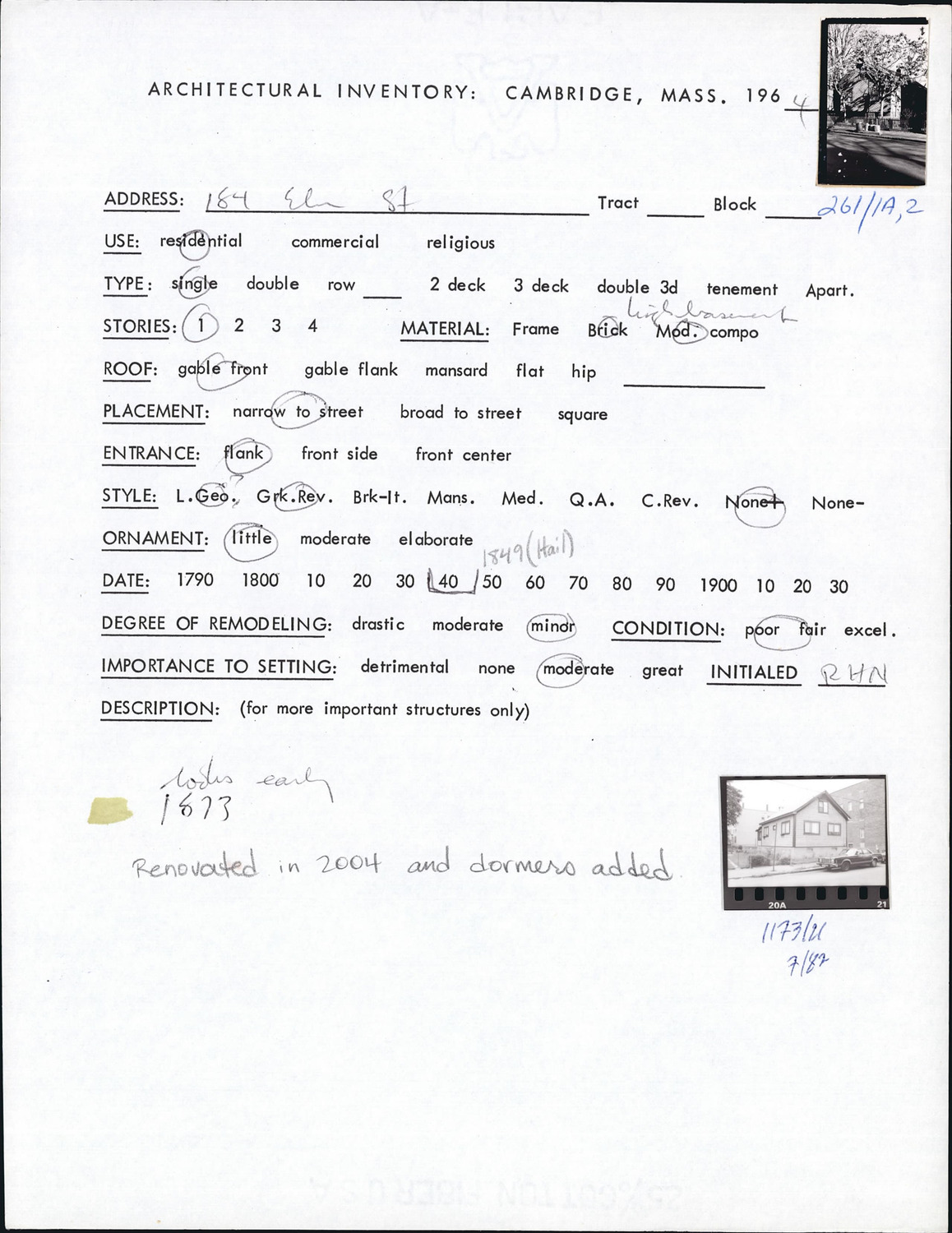 - Cambridge Historical Commission, Digital Architectural Survey and History.