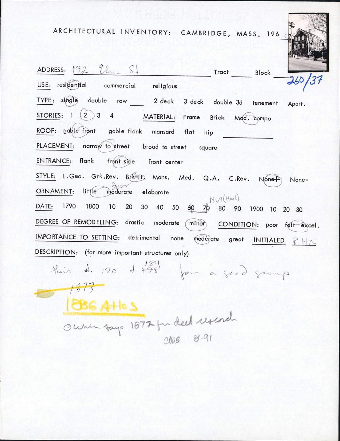 - Cambridge Historical Commission, Digital Architectural Survey and History.