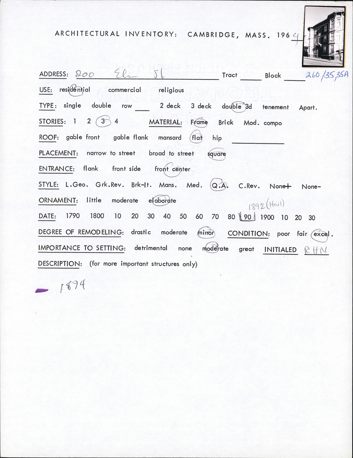 200 Elm St - Architectural Inventory Form