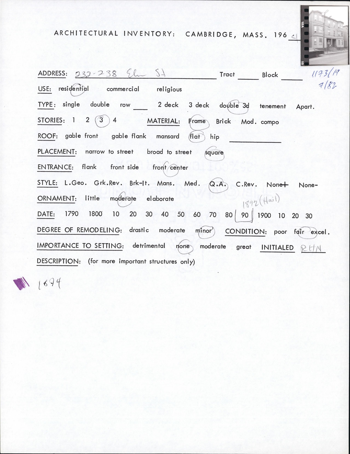 - Cambridge Historical Commission, Digital Architectural Survey and History.