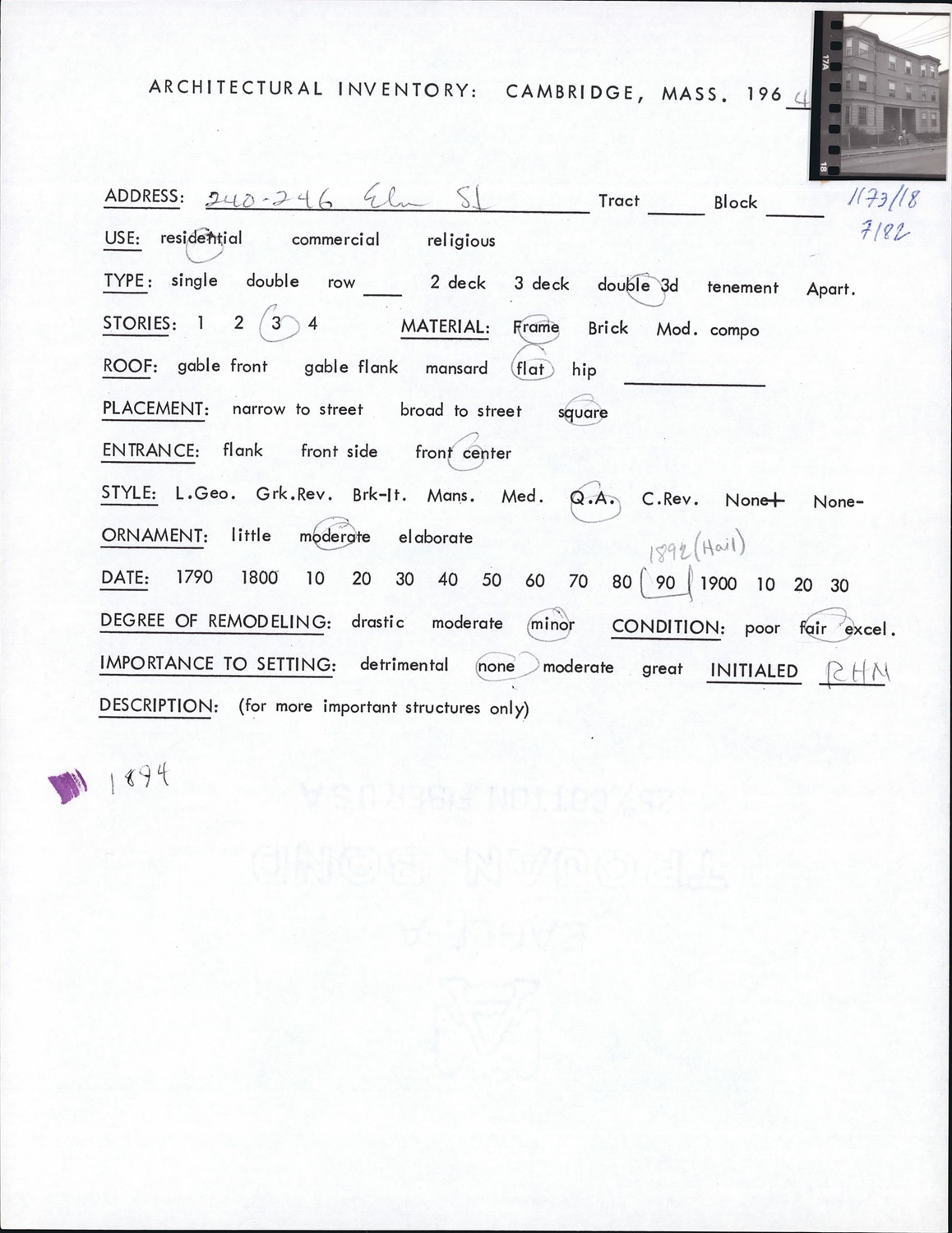 240-246 Elm St - Architectural Inventory Form