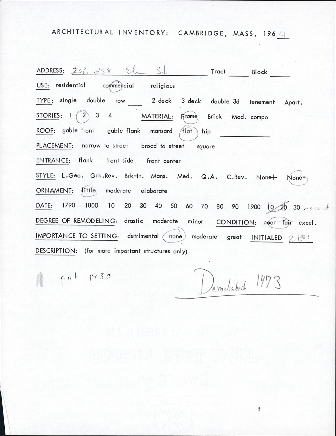 256-258 Elm St - Architectural Inventory Form